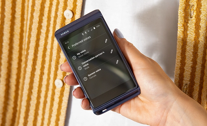 Azok számára, akik szeretnek választani. A forradalmi Vasco My Voice funkción túl klasszikus férfi vagy női hangot is választhat a fordítások felolvasásához. Így a hangszínt bármilyen helyzethez igazíthatja. Inkább formális hangszínt szeretne üzleti megbeszélésekhez, vagy valami melegebb hangvételűt családi beszélgetésekhez? Az Ön fordítója, az Ön szabályai.